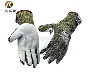 興譽ZW043 迷彩鋼絲加皮5級防切割手套