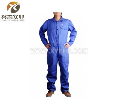 AP2530藍(lán)色阻燃布配炭啡色皮袖焊服