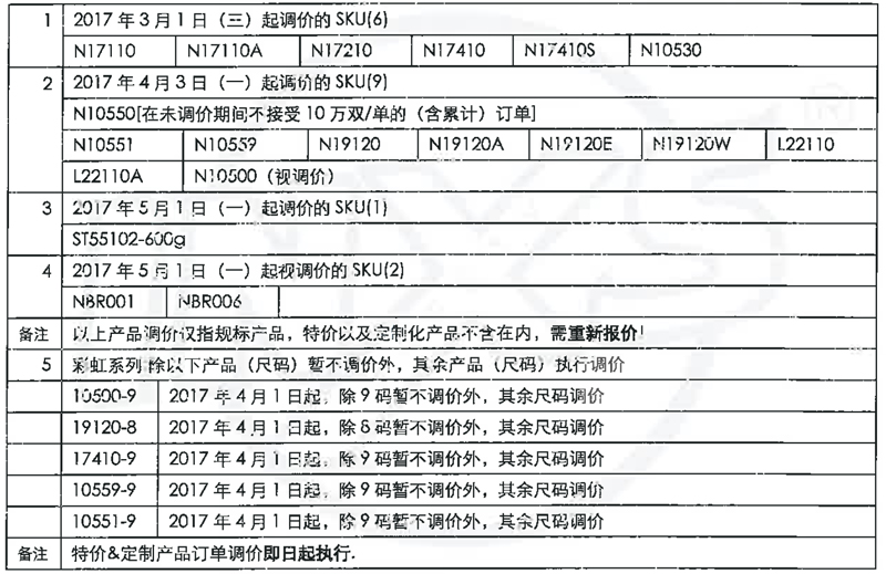 2017年(4月-1日)賽立特部分產品由于原材料上漲,價格上調,具體產品型號詳情如下:
