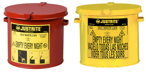 符合美國 OSHA 要求的油漬廢品罐是在使用浸有溶劑的布和抹布時的必備品。浸有溶劑、稀釋劑、亞麻籽油、可燃粘合劑和其他易燃液體的抹布和布如果隨意拋棄,將有極大的火災隱患。經(jīng)過專門設計的蓋子打開的角度不超過 60 度,不使用時將保持關(guān)閉,將內(nèi)容物與火源隔離,限制氧氣量,因此可有效地消除自燃隱患。圓形的構(gòu)造和加高的罐底可促進罐體周圍的空氣流通,從而達到散熱以及減少因水分聚集而生銹的目的。耐用的鋼制構(gòu)造采用耐化學腐蝕的粉末涂料涂飾。