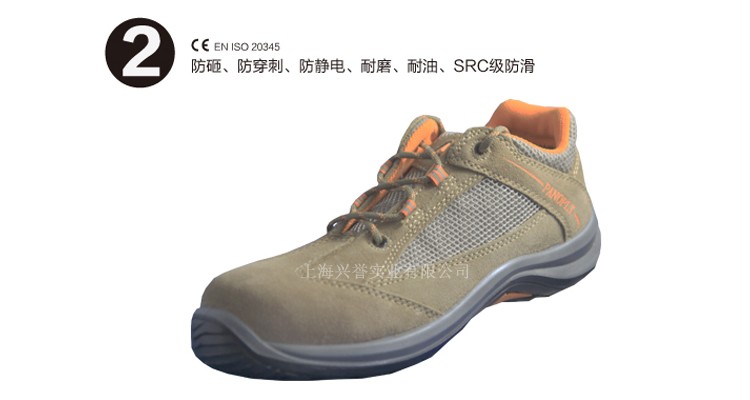 4.非金屬合成材料保護包頭和防穿刺中底,防砸、防穿刺、防靜電、耐磨、耐油、SRC級防滑