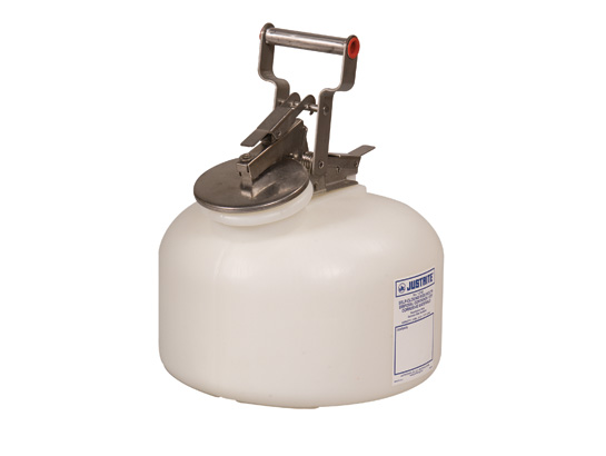 自動關閉式腐蝕性廢物罐由半透明、高密度的聚乙烯制成,經專門設計,耐酸堿腐蝕。7.5升至19升尺寸的罐在手柄處設有固定裝置,使蓋子能夠保持敞開。彈簧閉合帽提供嚴密的密封。罐口無消焰器,可快速傾倒非易燃腐蝕性液體。橢圓形的罐體上設有扳柄,可實現單手傾倒,并使罐的容量得到最大程度的利用。