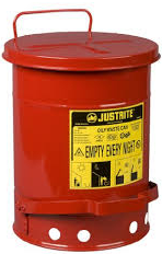 符合美國OSHA要求的油漬廢品罐是在使用浸有溶劑和抹布時的必備品。浸有溶劑、稀釋劑、亞麻籽油、可燃粘合劑和其他易燃液體的抹布和布如果隨意拋棄,將有極大的火災隱患。經過專門設計的蓋子打開的角度不超過60度,不使用時將保持關閉,將內容無與火源隔離,限制氧氣量,因此可有效地清除自燃隱患。圓形的構造和加高的罐底可促進罐體周圍的空氣流通,從而達到散熱以及減少因水分聚集而生銹的目的。耐用的鋼制構造采用耐化學腐蝕的粉末涂料涂飾。