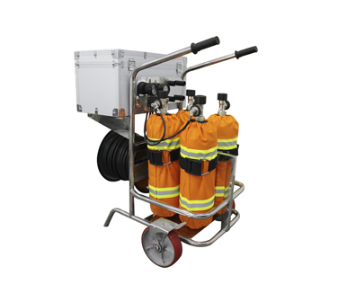 由不銹鋼小推車、碳纖維氣瓶、供氣管、減壓閥、供氣閥和全面罩等部件組成。