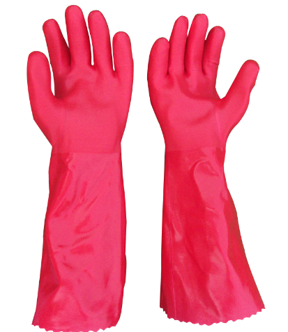 1.棉毛布襯里的PVC家用手套,有優良的拉伸強度和耐磨性,使用壽命大大超過乳膠手套。