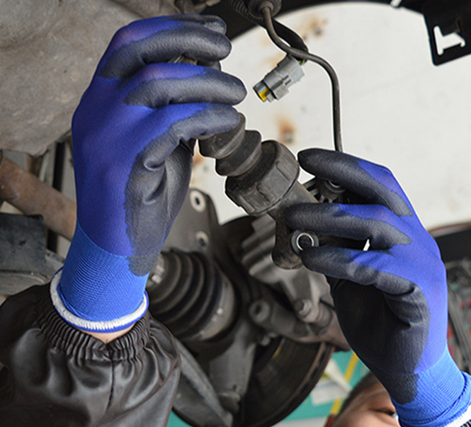 產品介紹:本手套采用特種纖維針織而成,手掌浸黑色PU,具有防滑、耐磨、耐油、耐臟等功能;手背透氣、吸汗、貼手。