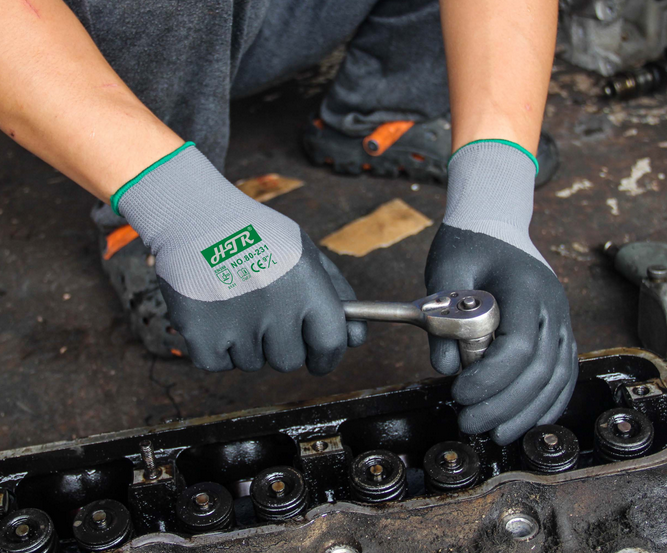 產品介紹:本產品采用特種纖維制作而成,手背3/4浸耐油發泡丁腈,透氣性好且有很好的耐磨性、防滑和防油等性能,人體工學手型設計,具有很好的透氣性,舒適度與靈巧度好,有效減緩作業疲勞度。
