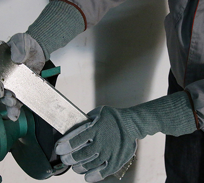 產品介紹:本產品采用特種纖維編織而成,具有良好的防切割性和透氣舒適性;此款采用特種皮包指新型工藝設計,有效減少拇指和食指的切割風險,同時提供很好的防穿刺性能,手腕加長設計,更有效的保護手腕和雙手。