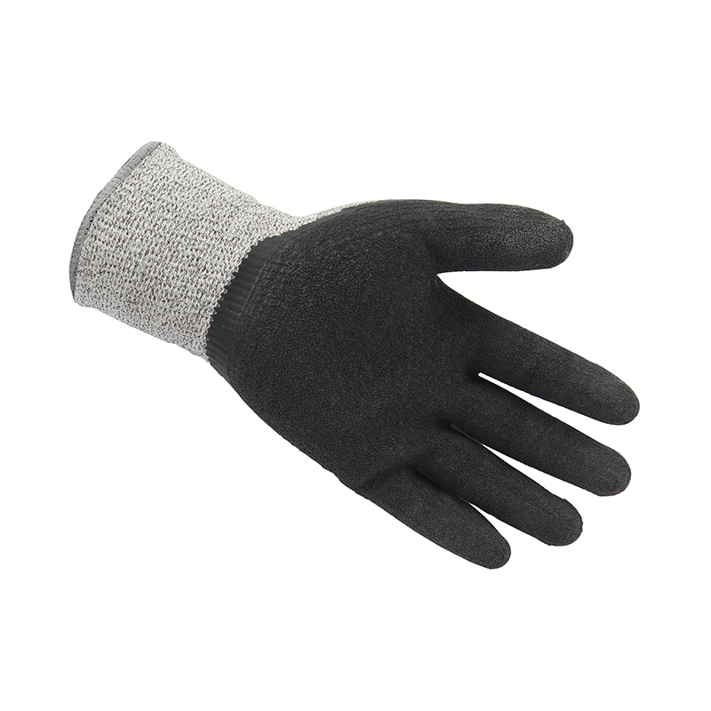 防水乳膠涂層,褶皺處理,使手套在干濕條件下具有抓握性能;