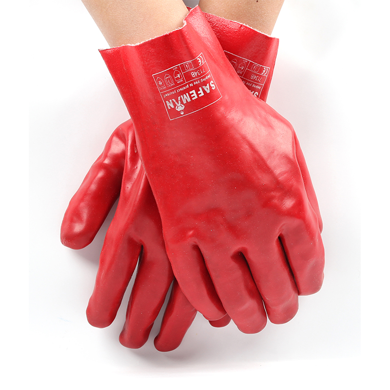 產品名稱:SAFEMAN君御7134B紅色PVC全浸棉襯防化手套