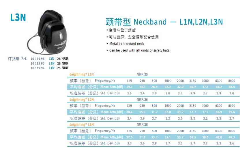 產品名稱:斯博瑞安1011994/1011995/1011996頸帶型耳罩\金屬環位于頸后\可與面屏安全帽等配合使用