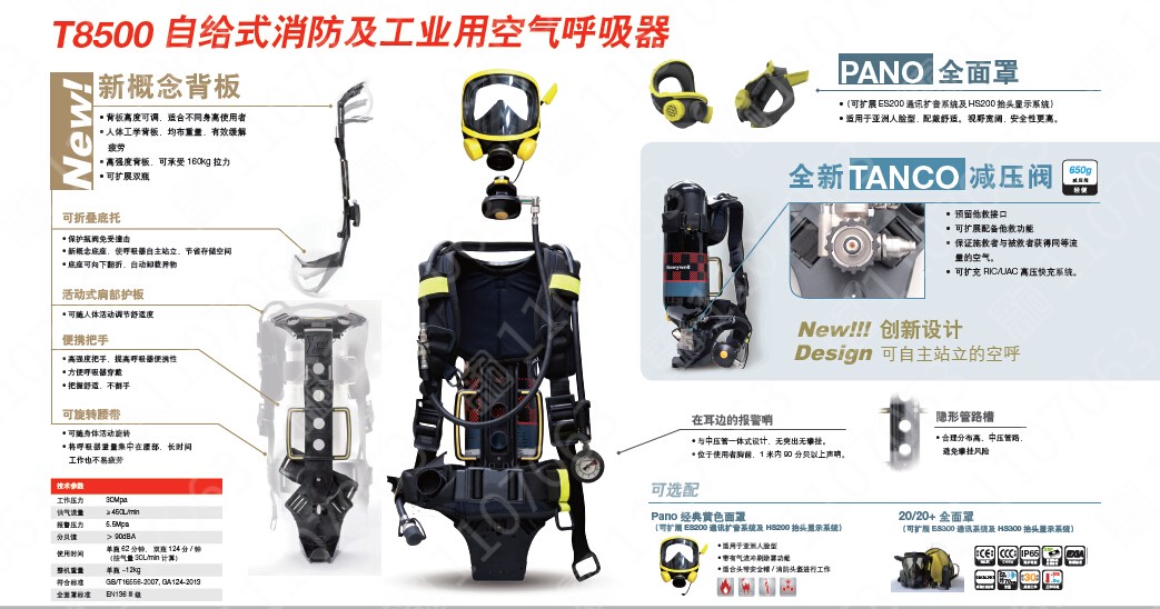 T8500 系列 SCBA2005H:T8500 標(biāo)準(zhǔn)呼吸器 Pano面罩/6.8L Luxfer氣瓶含Pano壓力平視