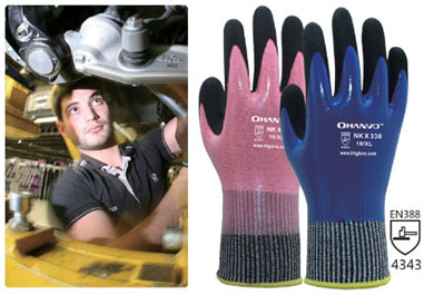 產品名稱:興譽NKX330防水防切割手套 產品簡介: 13針HPPE 手套芯全浸光面+掌浸磨砂雙層浸膠 針織HPPE 手套芯提供良好的防割保護功能. 光面全浸提供良好的防水功能. 外層磨砂浸膠具有優良的防滑功能. 適用于汽車,塑料等行業的組裝. 應用領域: 日常維修 運輸 & 倉儲 建筑,玻璃 機械組裝 汽車行業