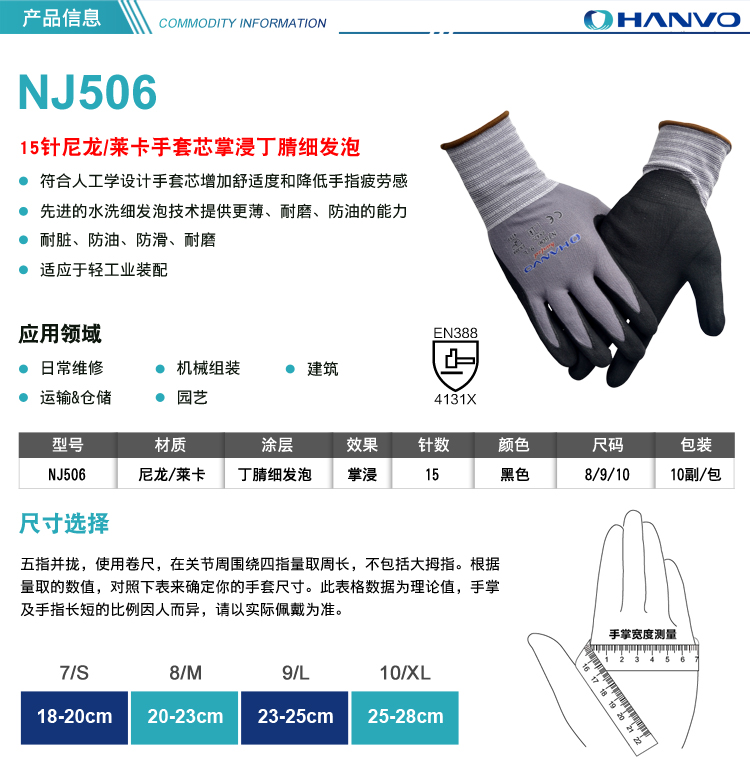 產品名稱:恒輝NJ506丁腈細發泡手套