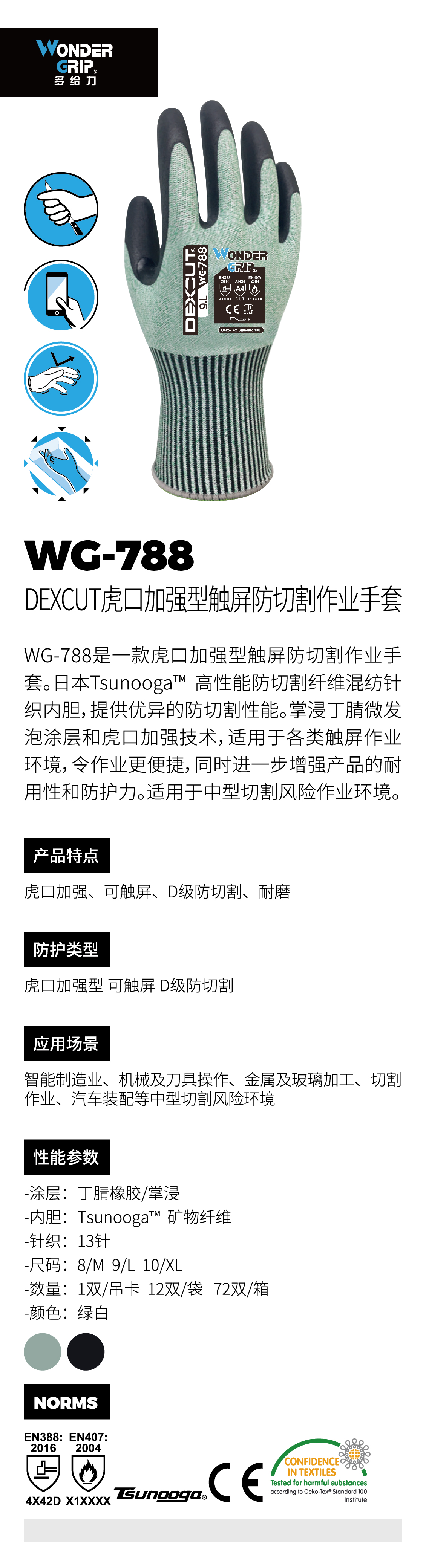 產品名稱:多給力 WG-788 DEXCUT虎口加強觸屏防切割作業手套