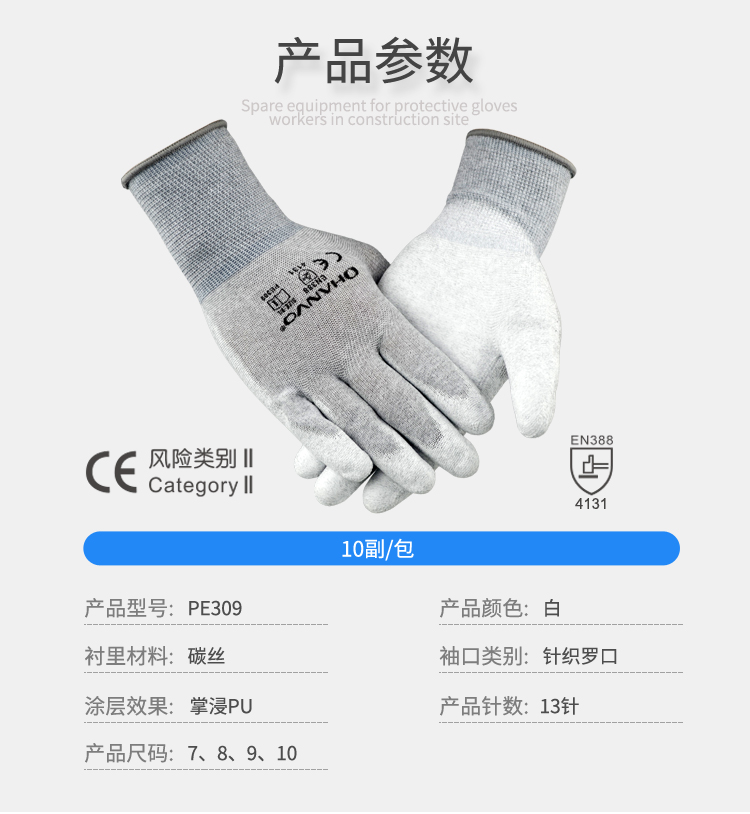 手指聚氨酯涂層提供良好的抓握性;