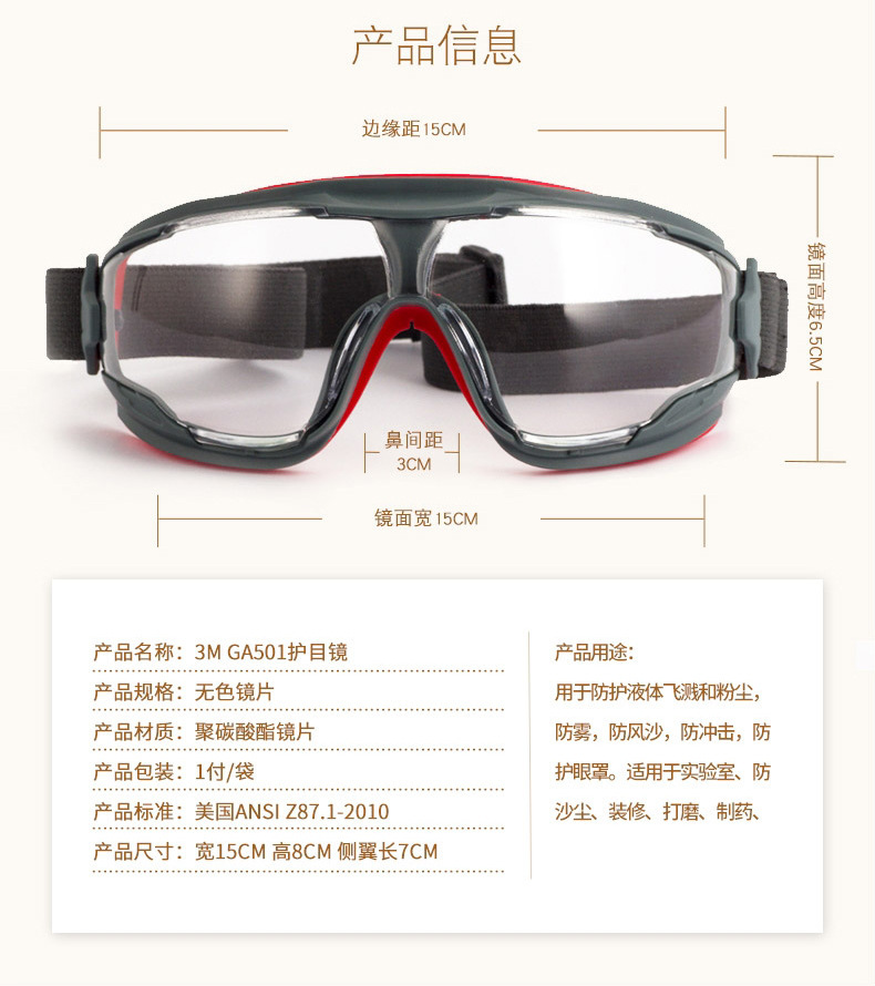 產品名稱:3M GA501 防霧防塵防液體飛濺護目鏡(GA500系列眼罩)