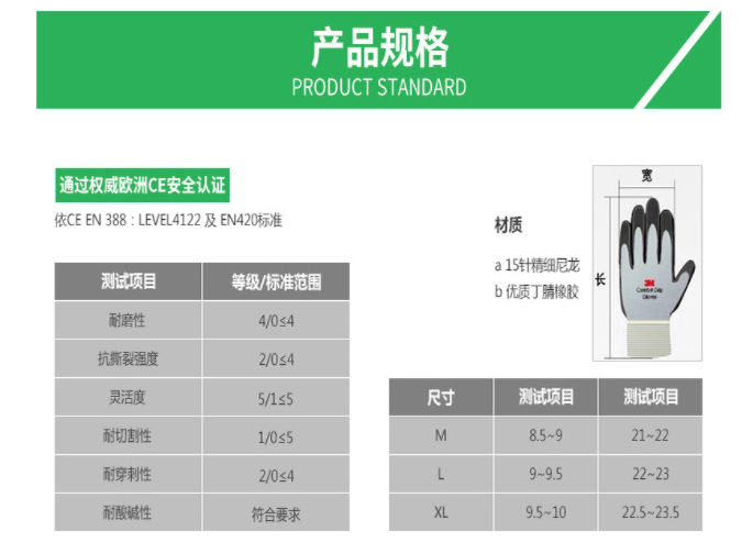 產品名稱:3M WX300923975舒適型防滑耐磨手套綠-L