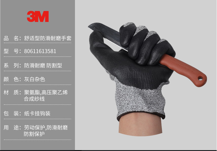 產品名稱:3M 舒適型防滑耐磨手套 防割型 L2 L 手套(貨號80611613581)