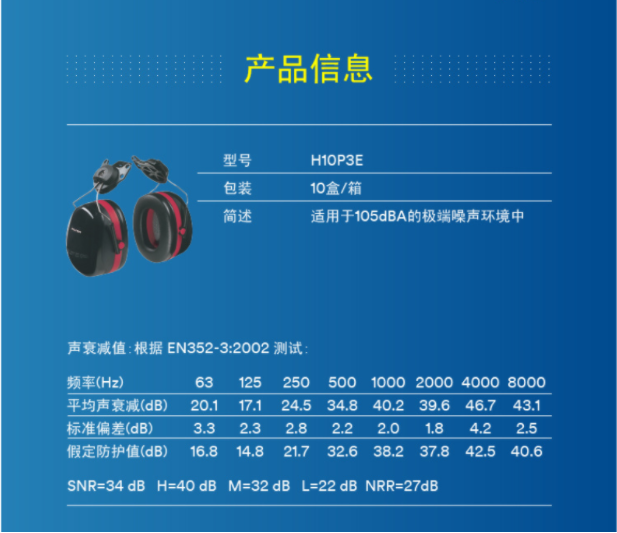 產品名稱:3M PELTOR H10P3E 掛安全帽式耳罩(SNR34dB)