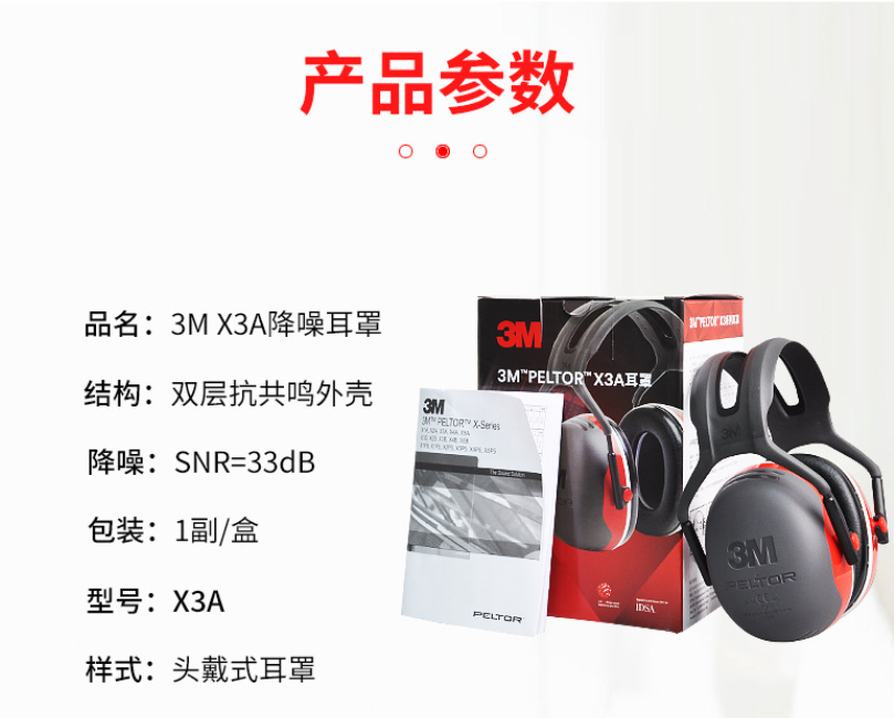 產品名稱:3M X3A頭戴式耳罩(SNR33dB)