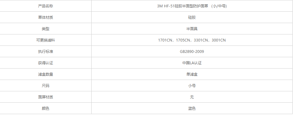 產(chǎn)品名稱:3M HF-51硅膠半面型防護面罩 (小/中號)