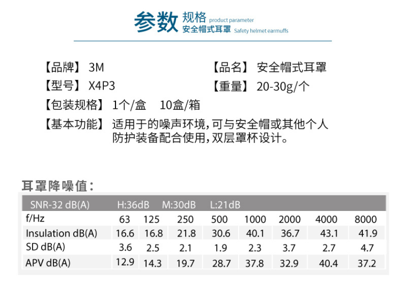 產品名稱:3M X4P3安全帽式耳罩(SNR32dB)