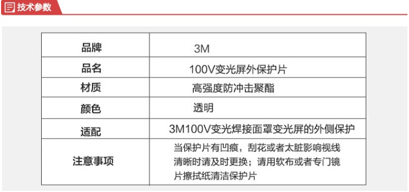 產品名稱:3M 變光屏外保護片100V(普通型)10片/包(零部件號776000)