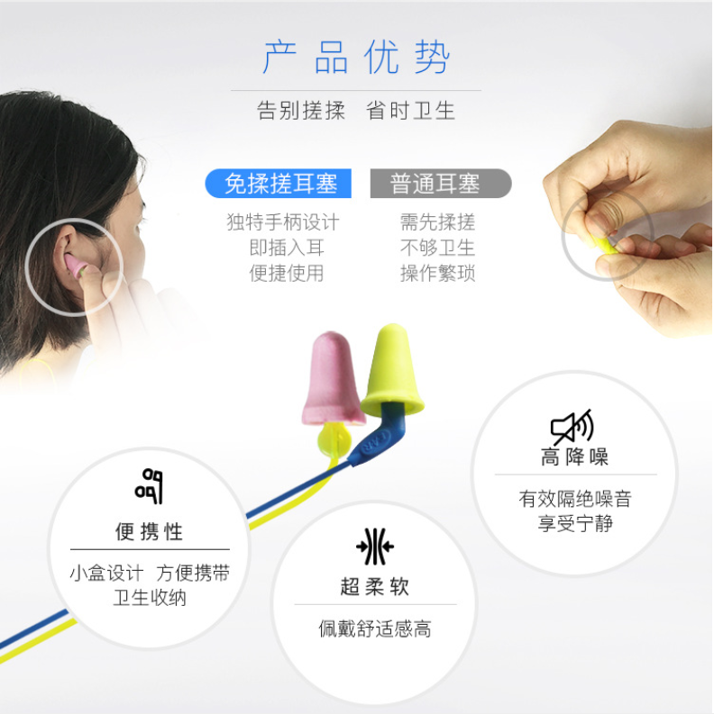 無需揉搓,方便入耳,可避免揉搓耳塞時與手接觸產生的臟污及細菌,潔凈更衛生;