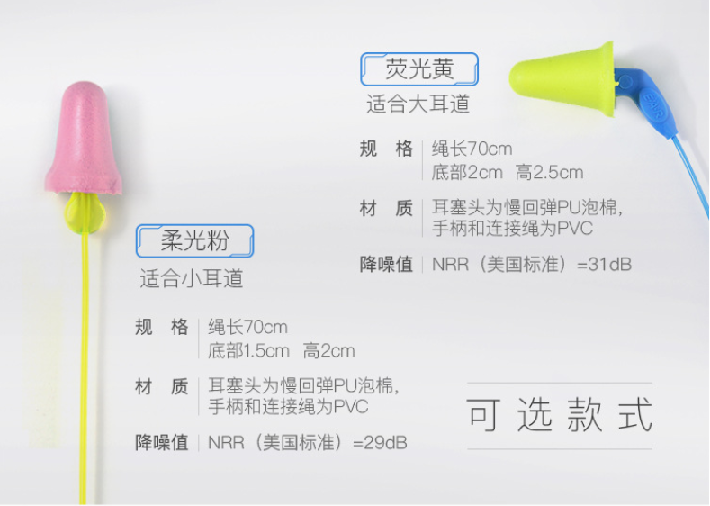 檸檬黃適用于大耳道人群,粉色適用于小耳道人群。