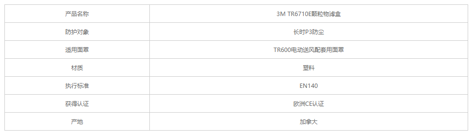 產(chǎn)品名稱:3M TR6710E 顆粒物濾盒