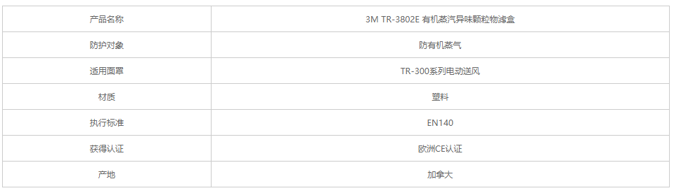 產品名稱:3M TR-3802E 有機蒸汽異味顆粒物濾盒