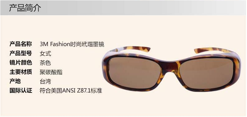 產(chǎn)品名稱:3M Fashion時(shí)尚玳瑁墨鏡