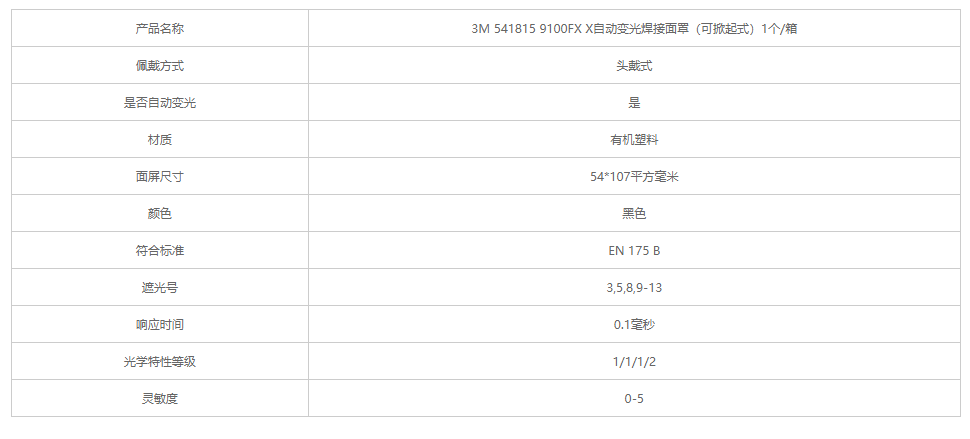 產品名稱:3M 541815 9100FX X自動變光焊接面罩(可掀起式)1個/箱