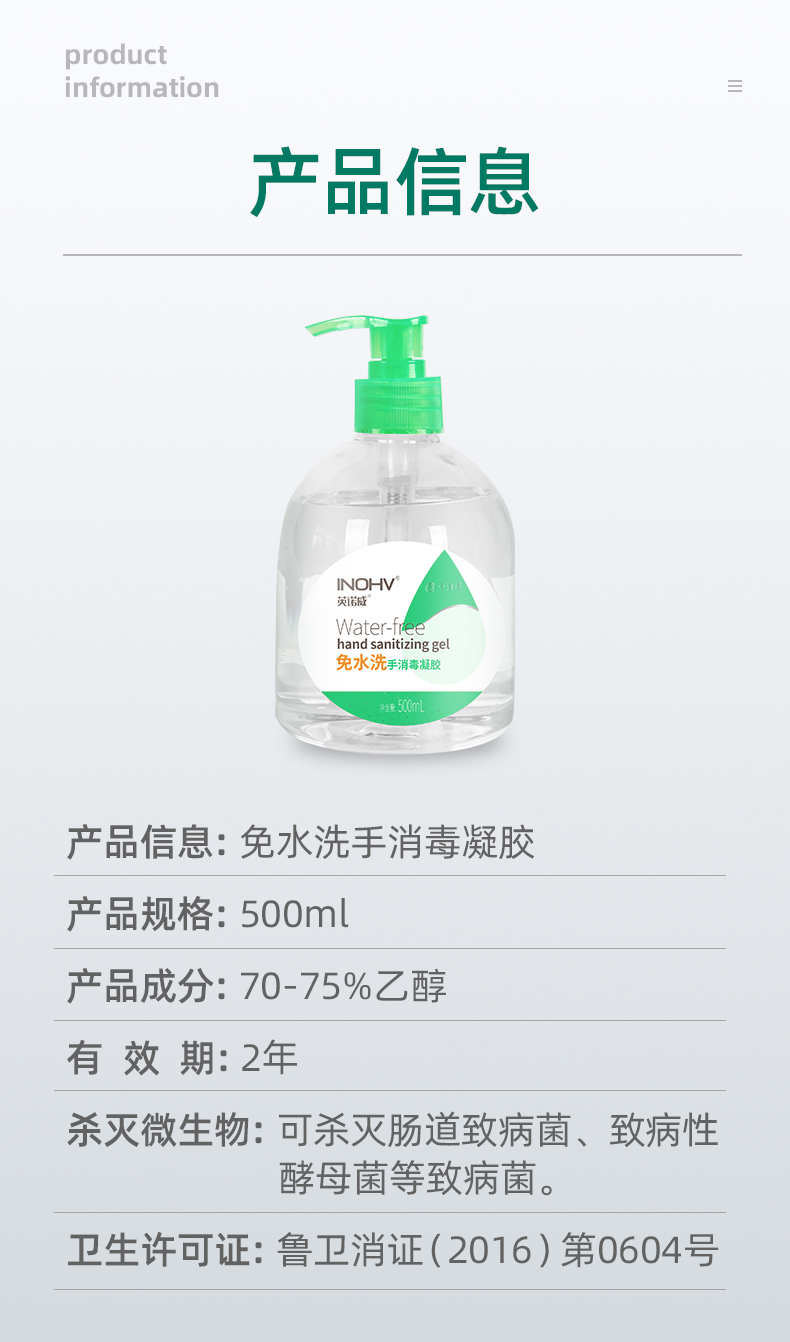 產(chǎn)品名稱(chēng):海氏海諾 英諾威免水洗手消毒凝膠500ml(圓瓶)